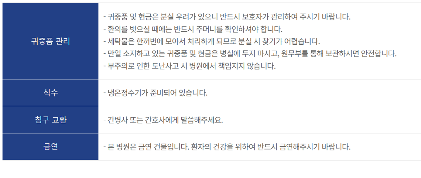 입원중 안내사항